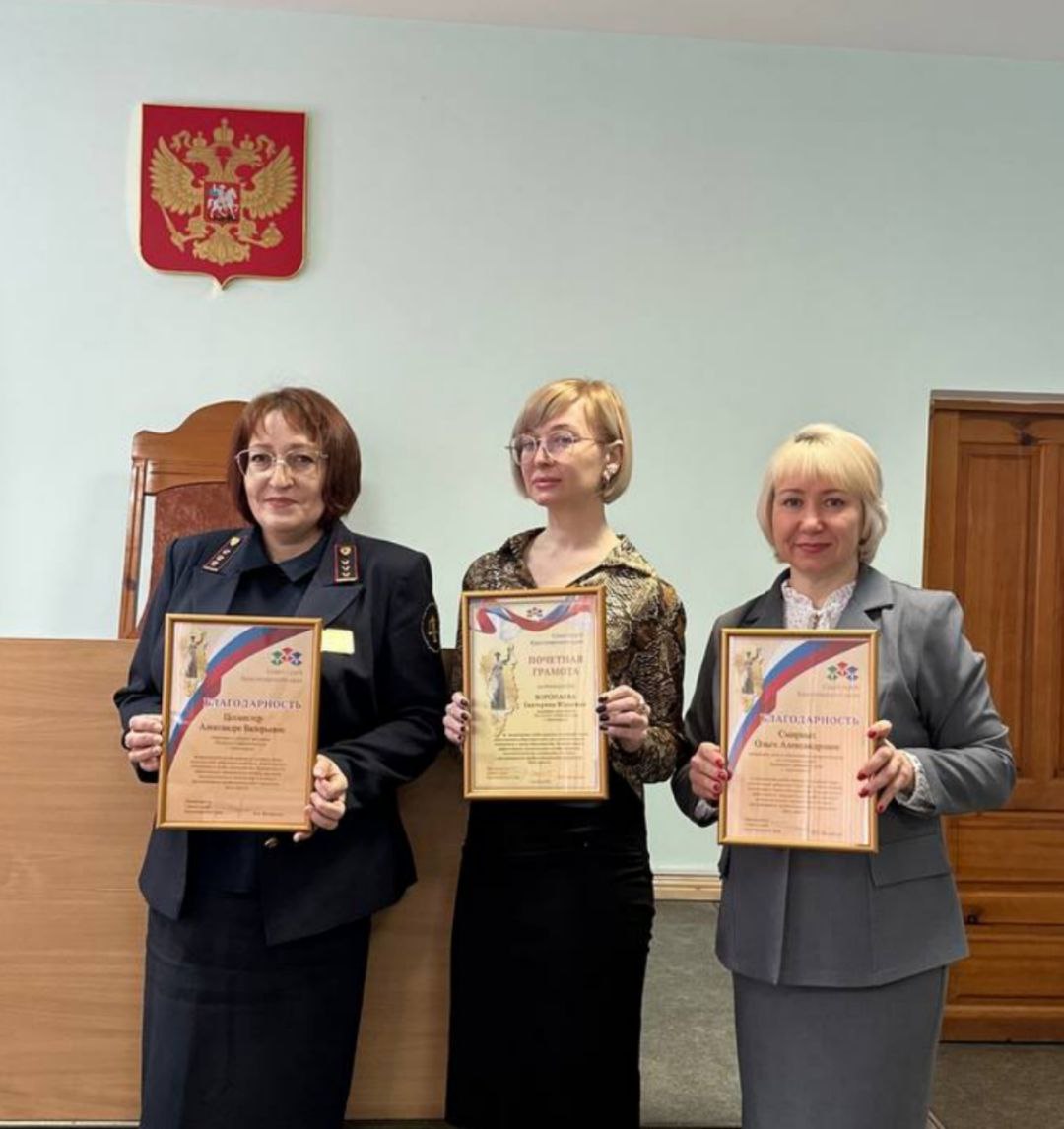 Также была отмечена секретарь судебного заседания Цехмистер Александра Валерьевна, чья внимательность и организованность способствуют бесперебойному проведению судебных заседаний.