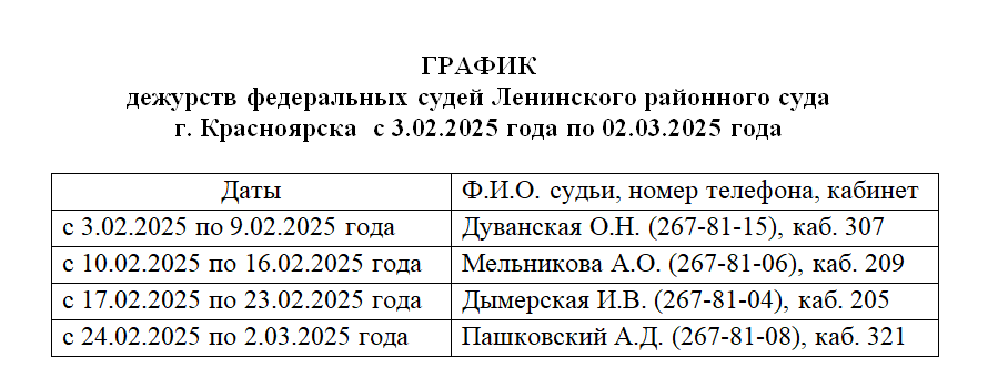 график дежурства с 03.02.2025 по 02.03.2025версия для печати