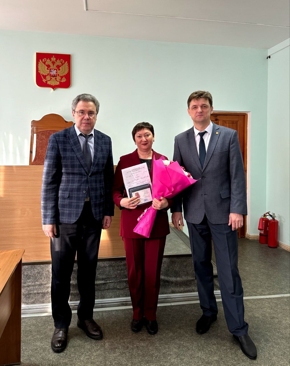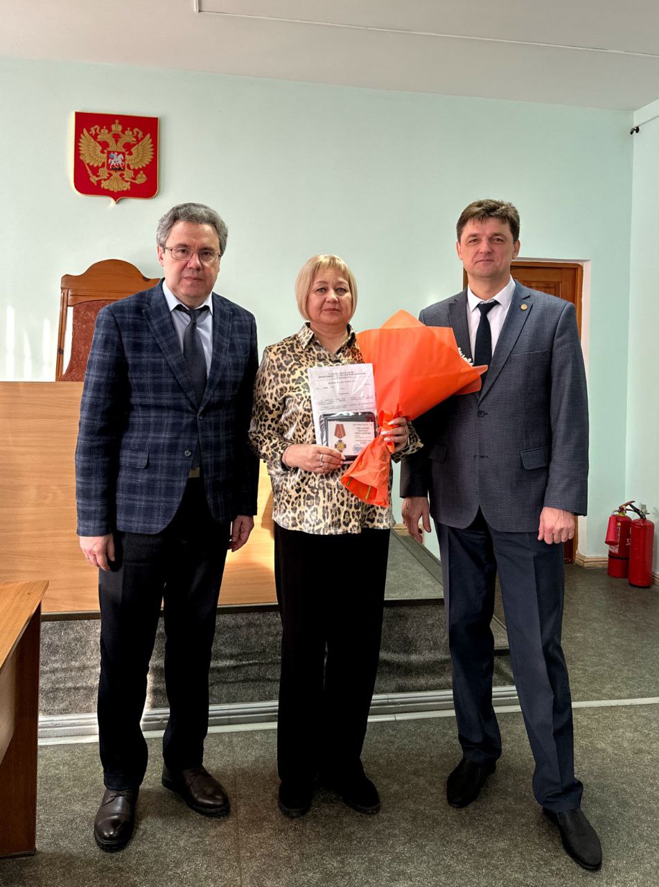 14.03.2025 года в Ленинском районном суде г. Красноярска начальник Управления Судебного департамента в Красноярском крае Букарин Александр Викторович в торжественной обстановке вручил знаки отличия «За усердие» II степени секретарю суда Бугаевой Наталье Владимировне и старшему специалисту 1 разряда Михаленко Светлане Александровне, а так же медаль за безупречную службу начальнику отдела делопроизводства Стереховой Марине Романовне.