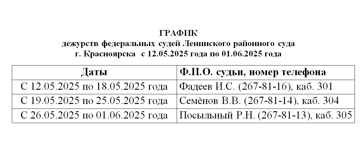 График работы приёмной суда