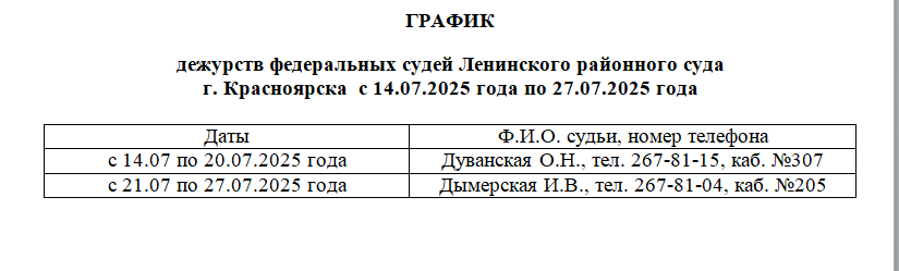 График работы приёмной суда