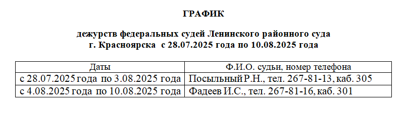 График работы приёмной суда