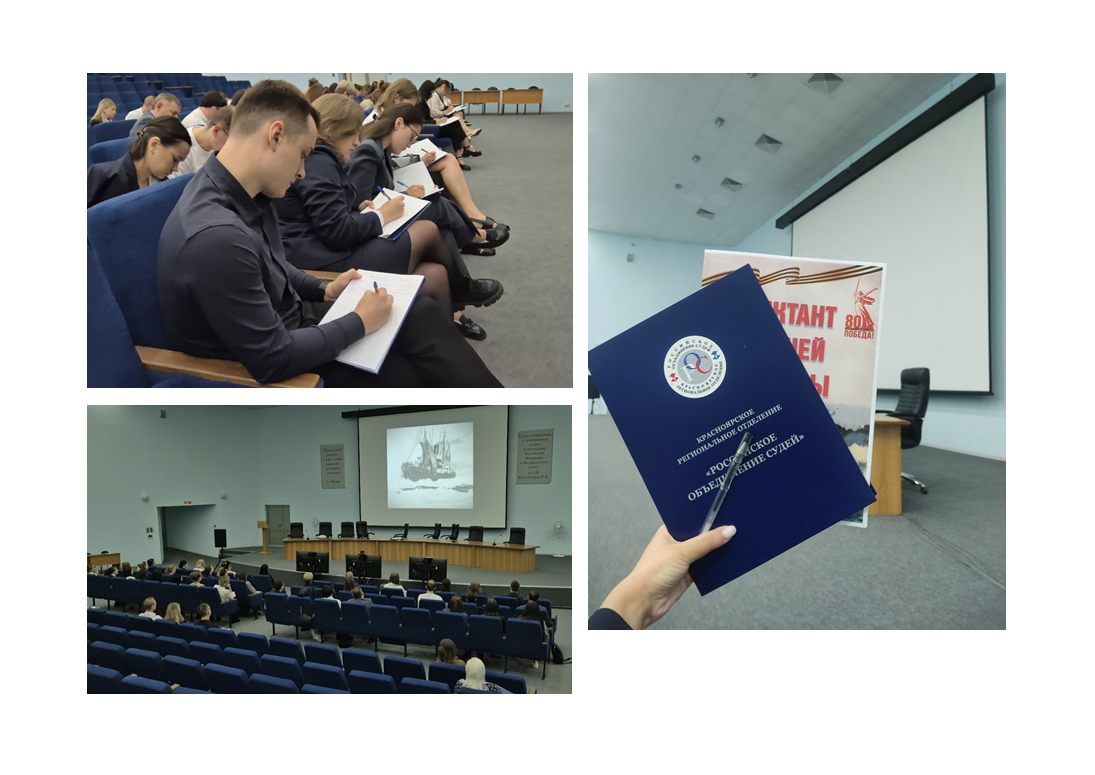 Сегодня в Красноярском краевом суде состоялась уникальная акция – «Диктант нашей Победы». Мероприятие, организованное региональным объединением судей (РОС), Советом судей Красноярского края и самим Красноярским краевым судом, стало первым подобным событием в истории российского правосудия. В акции приняли участие представители судов города Красноярска и Красноярского края, а также судьи и сотрудники аппарата Балтийского флотского военного суда из Калининграда. От Ленинского районного суда города Красноярска в мероприятии участвовали временно исполняющий обязанности председателя суда, судьи, начальник отдела делопроизводства и консультант суда. Начало акции ознаменовалось показом фильма, снятого на Диксоне по местам исторических сражений. Затем участники написали диктант, посвященный героическому эпизоду, а именно первому столкновению немецкого корабля «Адмирал Шеер» с советским пароходом «Александр Сибиряков». В своем героическом противостоянии, несмотря на гибель, «Александр Сибиряков» успел передать предупреждение советскому командованию о появлении вражеского судна в отечественных водах.![]() |
